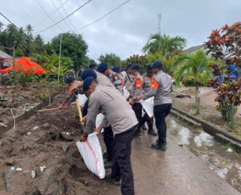 “Ini adalah wujud kehadiran negara. Kami melihat anggota di lapangan basah kuyup, bahkan harus berhadapan dengan arus air yang cukup deras, namun mereka tidak berhenti. Mereka bahu-membahu mengisi karung pasir sebagai upaya pencegahan sementara agar harta benda warga bisa diselamatkan,” tambah Kapolres.